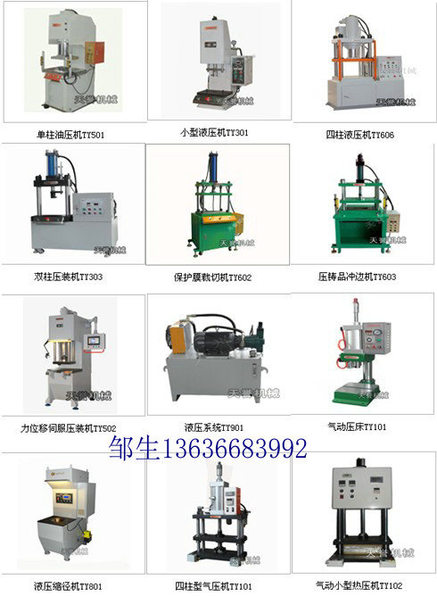 現主要分為:數控壓裝型油壓機,四柱式油壓機、單柱式(C型)油壓機、臥式油壓機、立式框架油壓機等。