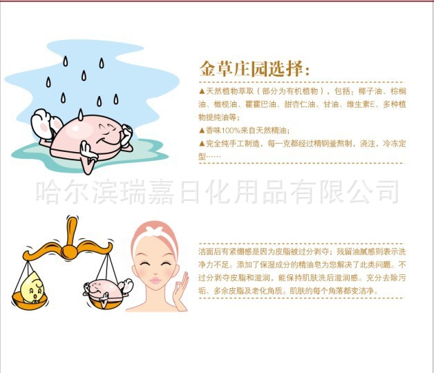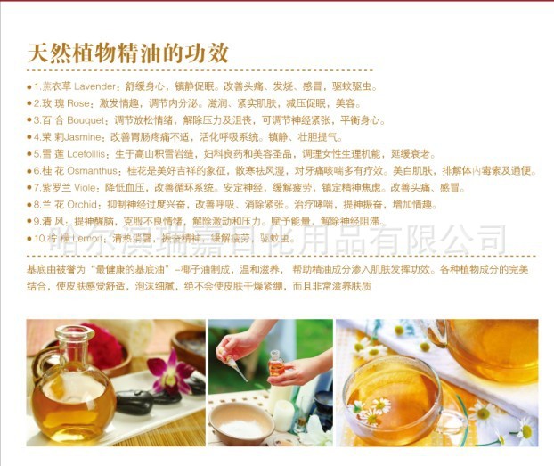 我公司生產的精油皂,原料采用進口優質植精油和皂基,結合現代制皂技術使兩者相溶合,每一塊精油皂,都是手工打造,精致完美。即秉承瞭精油的功效,成分溫和,又具有一定的藝術欣賞價值。潔膚,保護肌膚,潤膚活膚,控油保濕,是美容卸妝之首選促還能夠使細胞再生回復白嫩底色。改善敏感性肌膚,使肌膚更光滑,細嫩減少皺紋。日常生活中使用,還可以起到凈化空氣防傳染病、對抗細菌、病毒、黴菌、可防發炎,防痙攣、促進細胞新陳代謝及細胞再生功能,讓生命更美好。而某些精油能調節內分泌器官,促進荷爾蒙分泌,讓人體的生理及心理活動,獲得良好的發展。