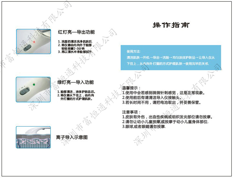 離子導入導出儀采用高微震動高科技技術,搭配保養品,讓肌膚水嫩透白,能快速將營養成分導入基底層,增加細胞能量,加快細胞運動及新陳代謝,讓肌膚恢復活力,白嫩和富有彈性。