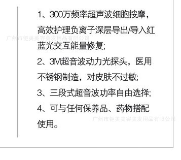 1.正離子+超音波復合能量==深層深層凈化 清潔潔膚!