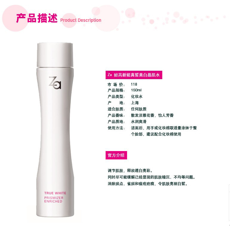 Z獨有的皙透系統賦予肌膚光澤及透明感,同時淡化色斑及粉刺斑印等色素沉著,調理肌膚。
