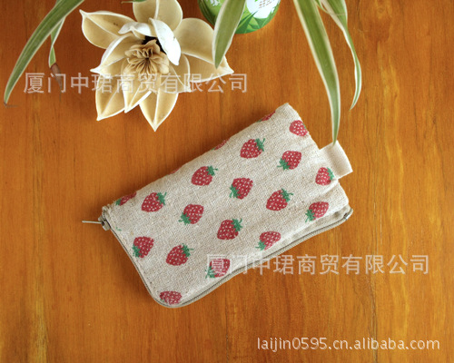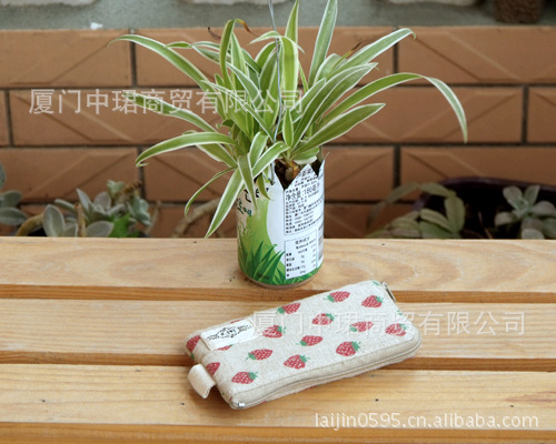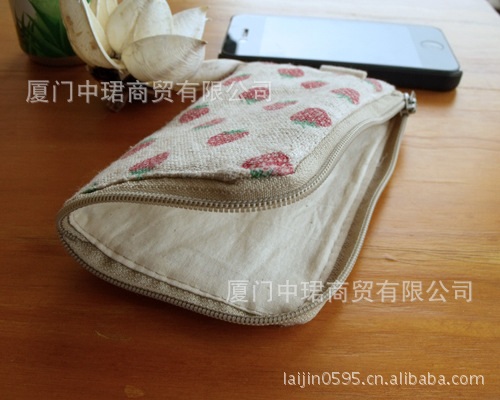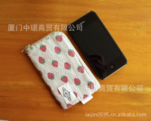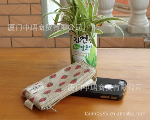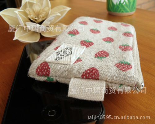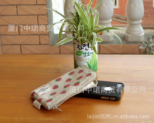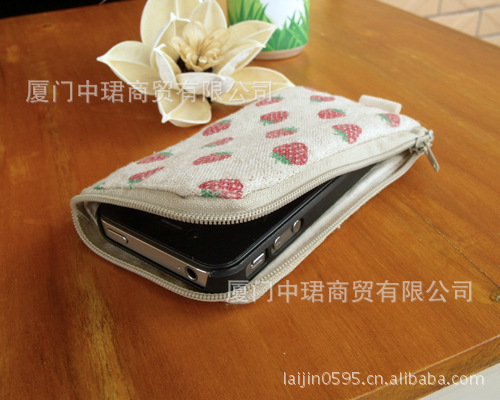日式zakka雜貨 傢居飾品 DIY棉麻草梅拉鏈手機包 iphone4S手機包