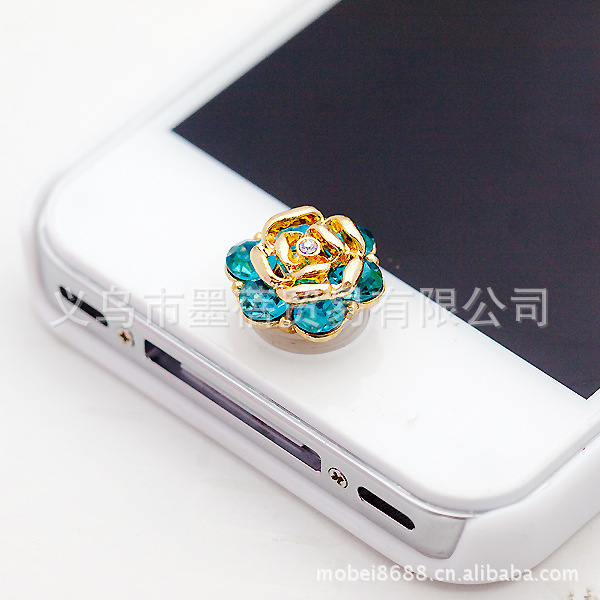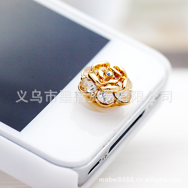 按鍵貼 鑲鉆玫瑰花 iPhone 4/4s