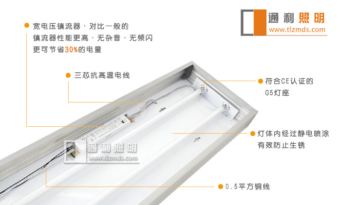 | 設計特點 | 采用防眩光燈罩反射透光原理,有效降低光對人體視覺的疲勞,安裝方便。 | ||||