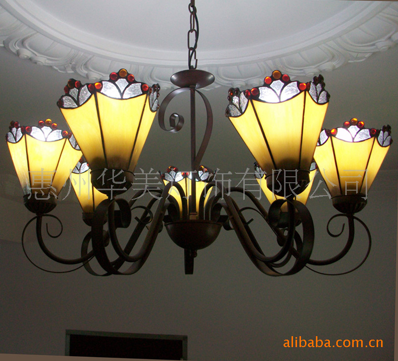 3、帝凡尼燈具的燈罩是純手工制品,是用彩色玻璃一片片用錫線焊接而成的,它是屬於易碎品,請一定要輕拿輕放!