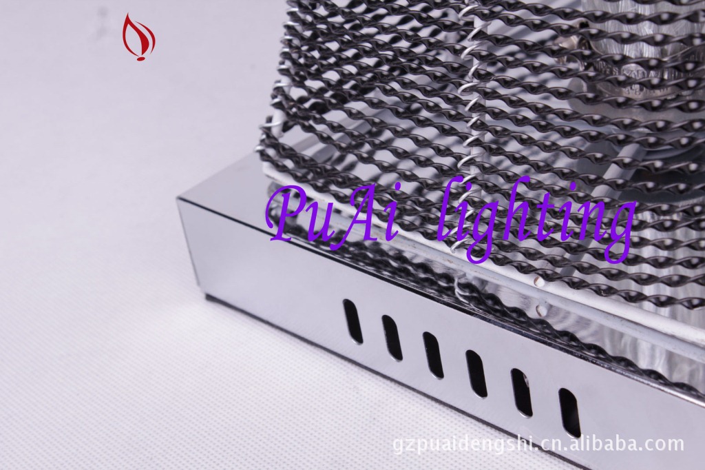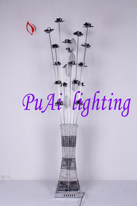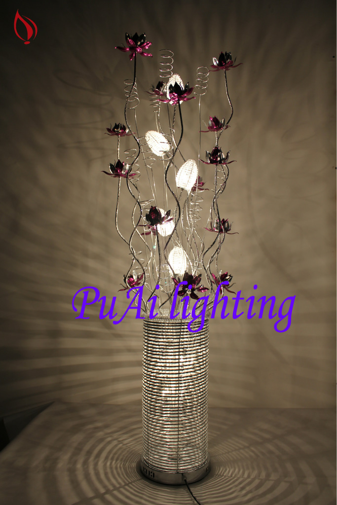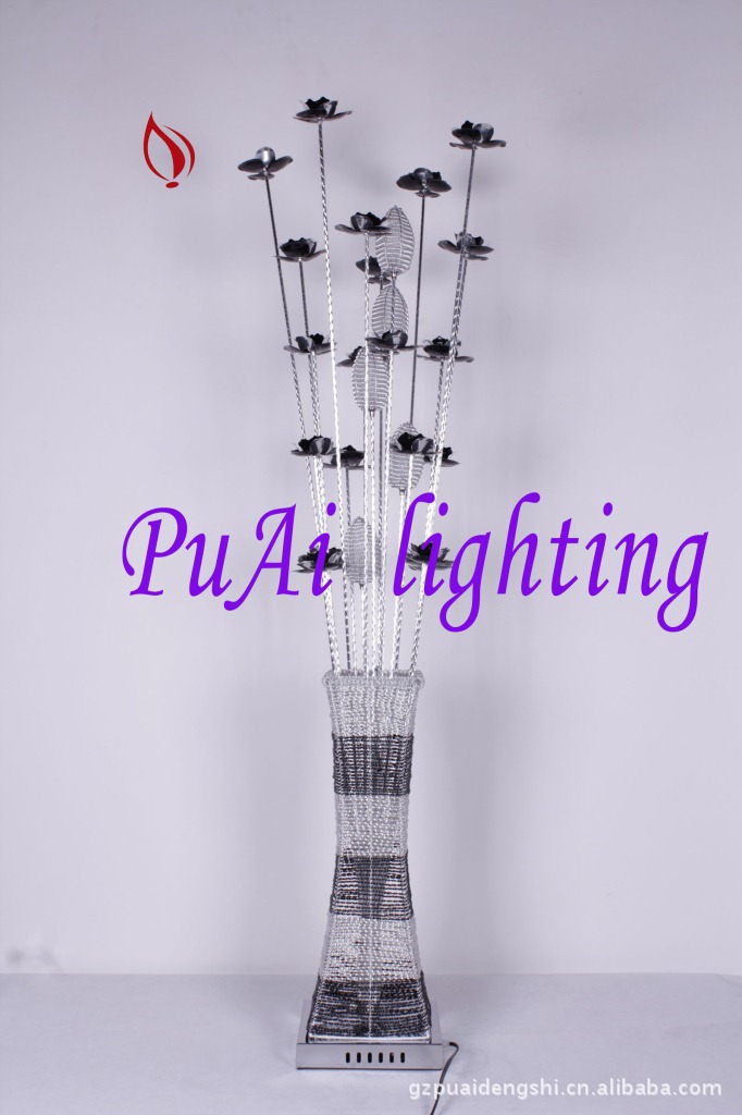 名稱:鋁線落地燈 型號:PA1000 規格:高 135cm,直徑 23cm 【材 質】:100%純優質鋁線,抗氧化,不變色。 特點:安全美觀,經久耐用,永不生銹,清洗簡單。 光源:G4*20W*7。 適用范圍:大堂、客廳、臥室、餐廳、喬遷送禮、婚慶禮品等。 備註: 1.可加裝遙控器 2.款式和尺寸可按要求定做。