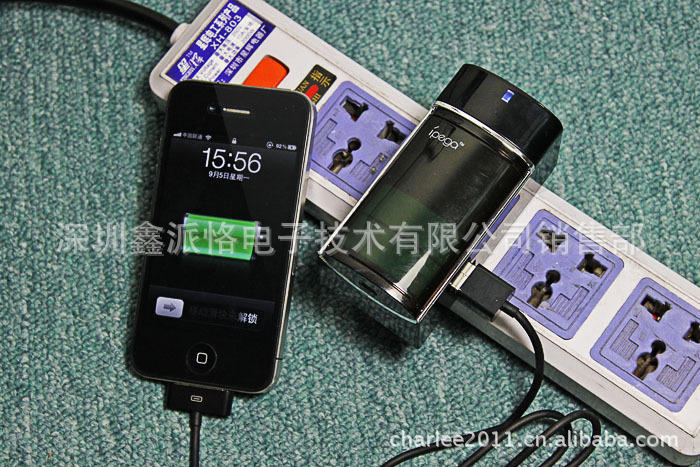 ⑵將火牛接入市電電源,再通過配套的USB轉iPad/iPhone/iPod通用充電線連接火牛至iPhone主機。