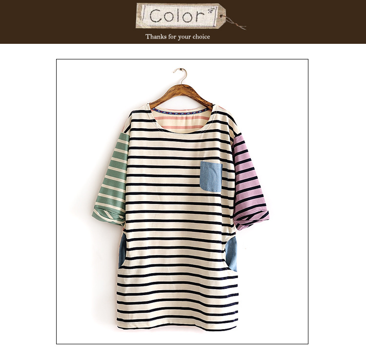 這款是4月份上的春裝,很多客戶反映面料厚實,款式好看,可以當秋裝賣,是的,多色條紋拼色是市面上難的1見的款式,加上