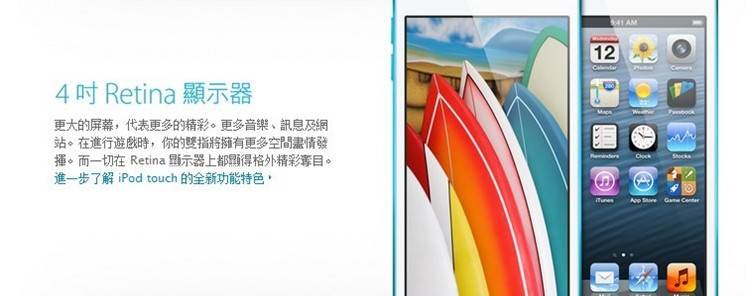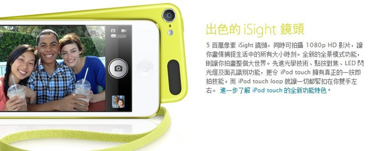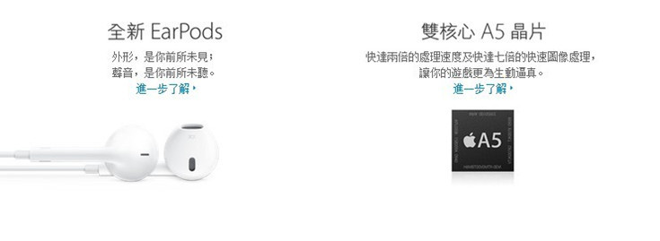 | 包裝清單 | 蘋果 iPod touch 5(32GB) x1 iPod touch loop x1 Apple EarPods x1 Lightning to USB連接線 x1 快速入門指南 x1 | ||