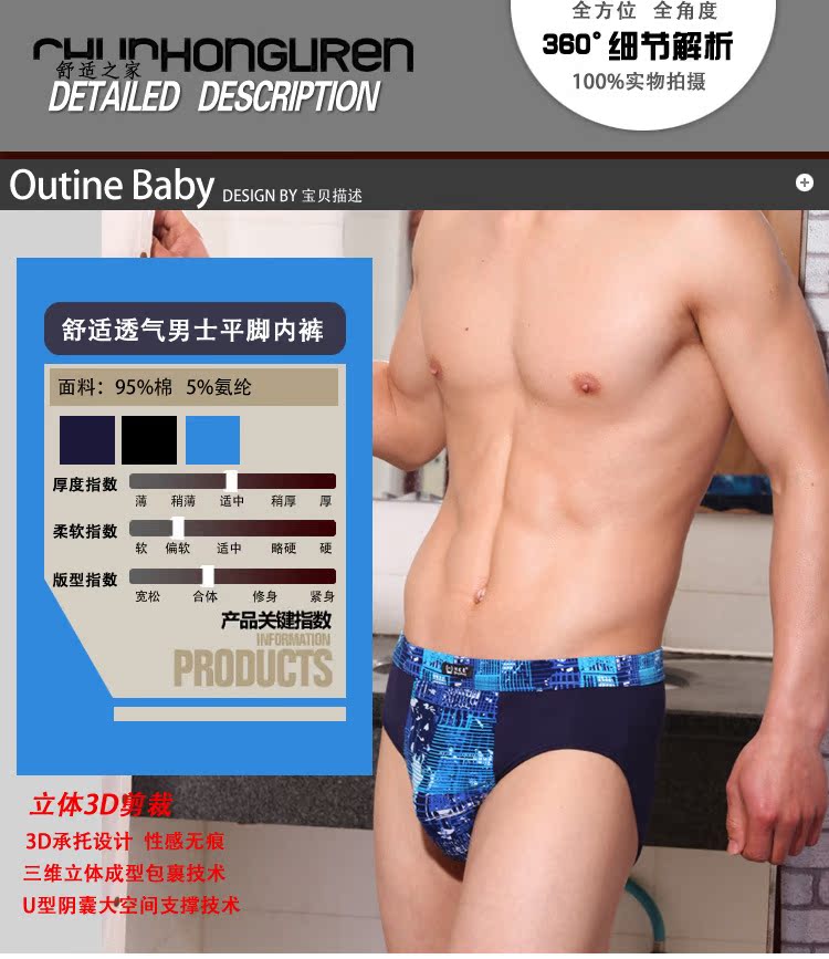 181 批發 男士三角內褲 萊卡全棉印花男式內褲 男士褲頭