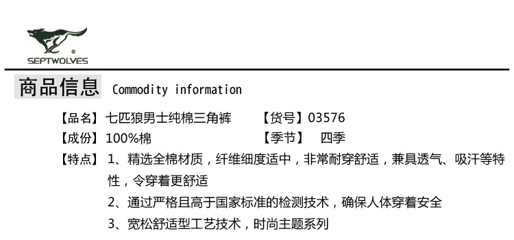 七匹狼內褲 男士內褲 內褲男 純棉 全棉 三角內褲 三角 印花