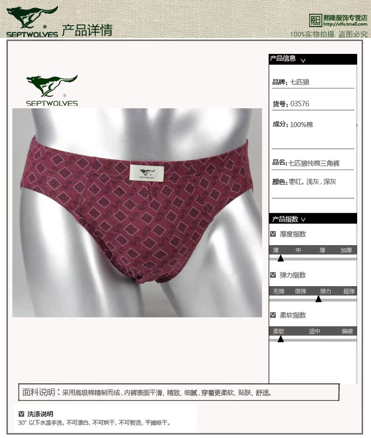 七匹狼內褲 男士內褲 內褲男 純棉 全棉 三角內褲 印花(2條裝)