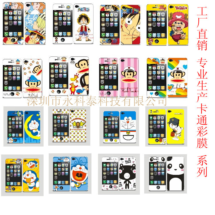 本公司iPhone4/4s iphone5 可愛貼膜已超過300款,夜光,彩膜,3D膜,全身貼 款式齊全,更多新款進行中。。。歡迎全國各地批發商前來進貨,可依據客戶所提供圖案制作;數量需達1000張一款起訂,另誠招淘寶代理商;可代發貨